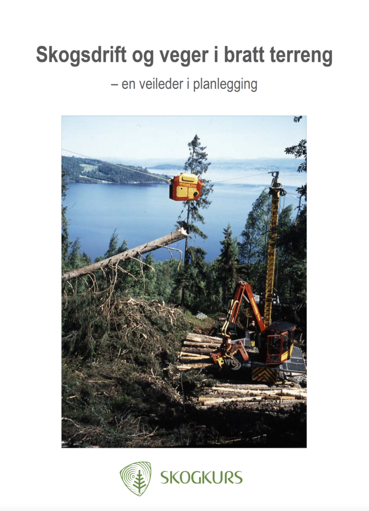 Skogsdrift og veier i bratt terreng er en faglig veileder som gir en enkel innføring i viktige momenter for å kunne ta beslutninger for riktig veibygging og rasjonell skogsdrift i det bratte terrenget.