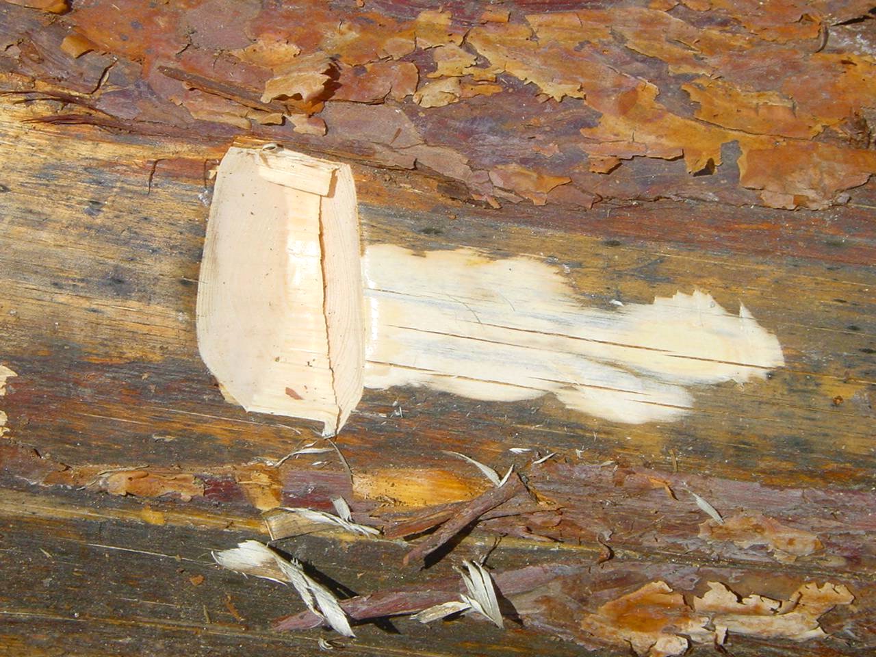 Avvirkningsfeil: SLURESKADE – Er sår i stokkens overflate som oppstår når matevalsene slurer eller spinner.