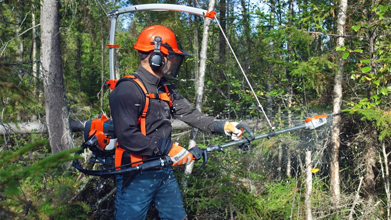 På Husqvarna sin sag er motoren er plassert i en bæremeis som bæres på ryggen som en ryggsekk. Skjæreutstyret er hengt opp i et «tårn» med et fleksibelt oppheng som holder utstyret og gir god rekkevidde, og bidrar til å gjøre arbeidet lite anstrengende.
