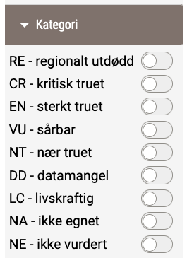 Basert på vurderingene plasseres arten i en kategori.