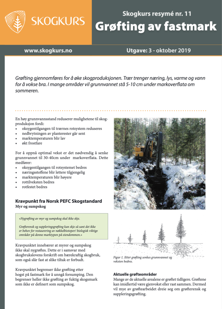 Grøfting gjennomføres for å øke skogproduksjonen. Trær trenger næring, lys, varme og vann for å vokse bra. I mange områder vil grunnvannet stå 5 – 10 cm under markoverflata om sommeren.