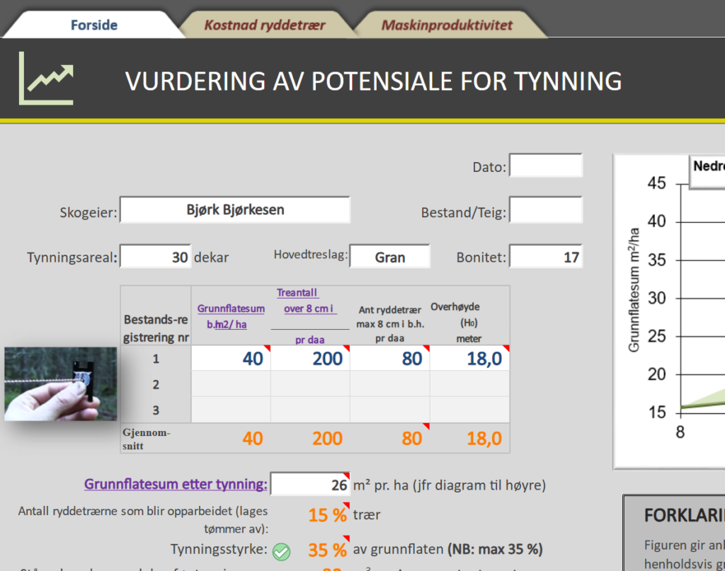 Her er verktøyet som hjelper deg med vurdering av potensiale for tynning.