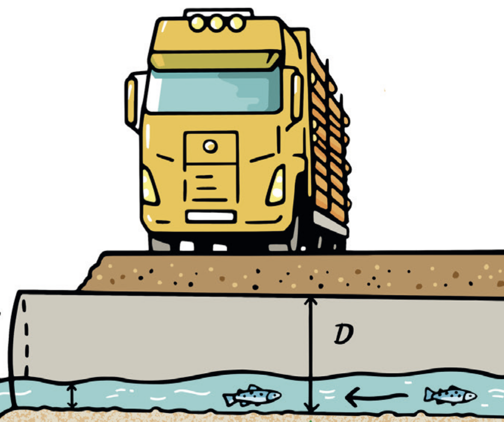 Mange gytebekker for fisk har blitt forringet og ødelagt i tiden det har blitt anlagt skogsbilveier. Fisk skal kunne fortsette sin ferd oppover et vassdrag selv om det er anlagt en skogsbilvei over vassdraget.