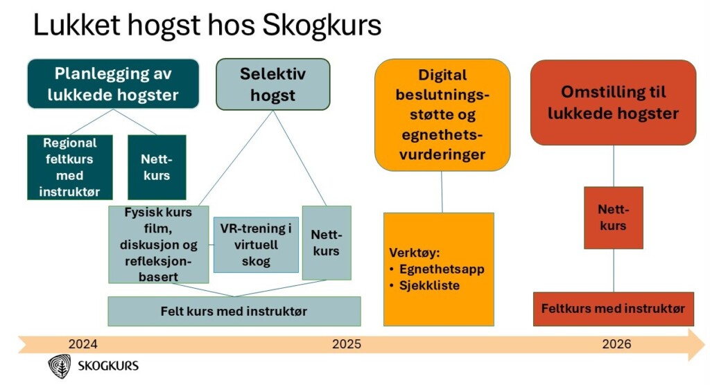 På bestilling fra, og i tett samarbeid med næringen, har Skogkurs de siste årene hatt et stort fokus på å utvikle og styrke kompetansen rundt lukkede hogster. Nå foreligger en omfattende kompetansepakke. Kursaktiviteten har allerede gitt tydelige effekter, bedre praksis og større bevissthet om valg av hogstform.