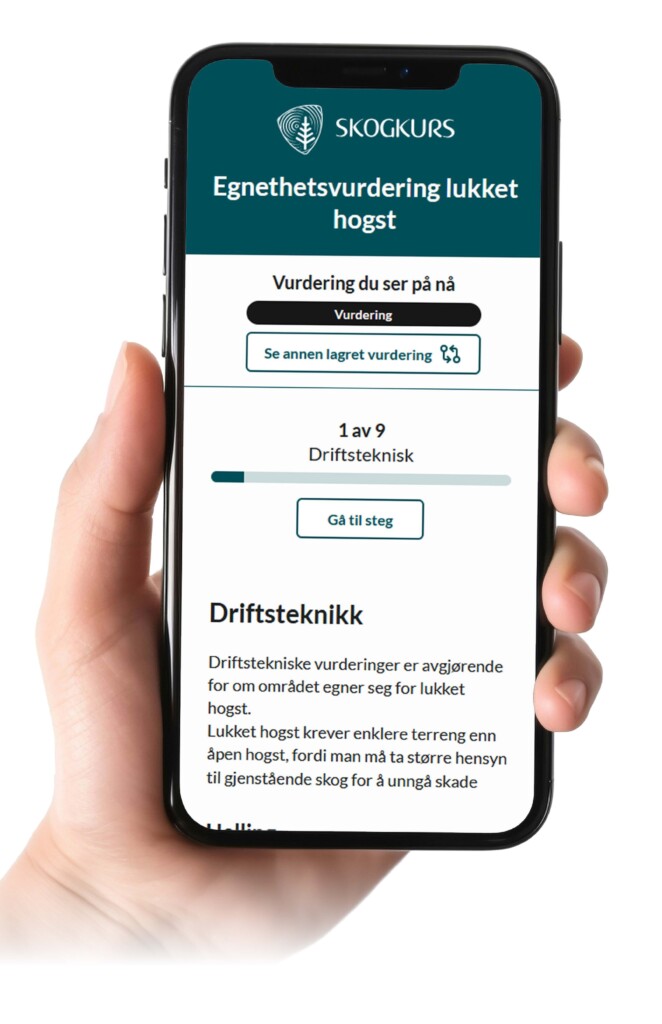 Dette er et støtteverktøy for å vurdere egnethet for de tre mest brukte formene for lukket hogst i Norge: selektiv hogst, skjermstillingshogst og gruppehogst.