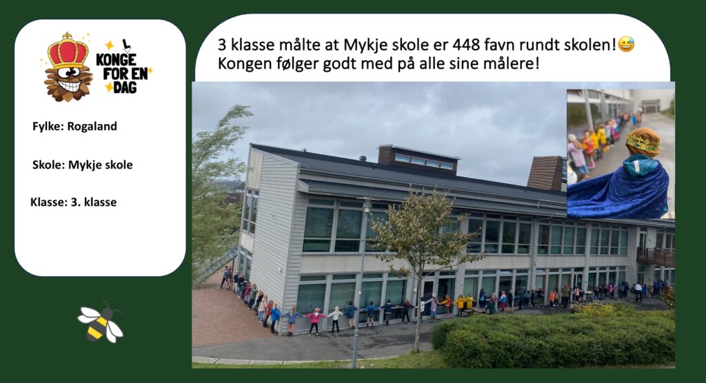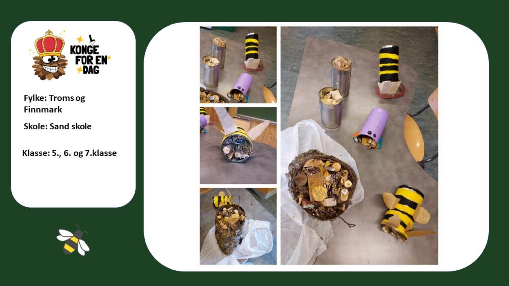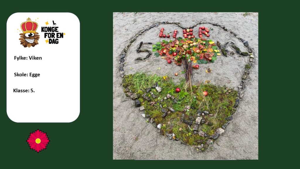 • 37 ivrige små skogkong(l)er har i formiddag vært med på å samarbeide om å lage en kjempe stor konge i skolegården, den ble 4 – 5meter stor!! Tidligere i uken har elevene hatt i lekse å plukke med seg naturmaterialer og ta med på skolen i dag. Skal love at dette har skapt engasjement. Foreldre har meldt tilbake at de har blitt dratt ut i nærskogen sammen med elevene og at det har blitt noe veldig hyggelig ut av det, så motivasjonen om å lage et felles mesterverk var høy!